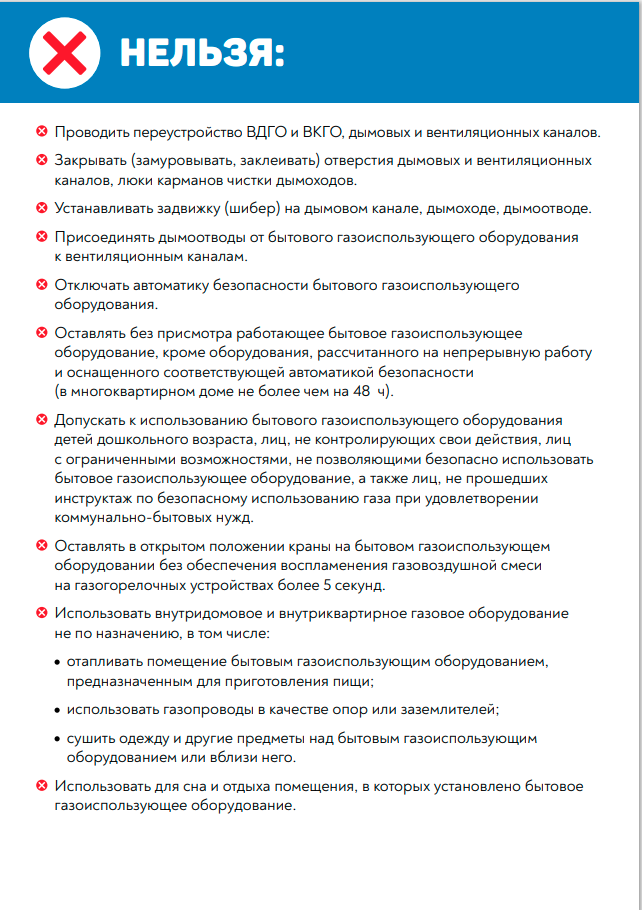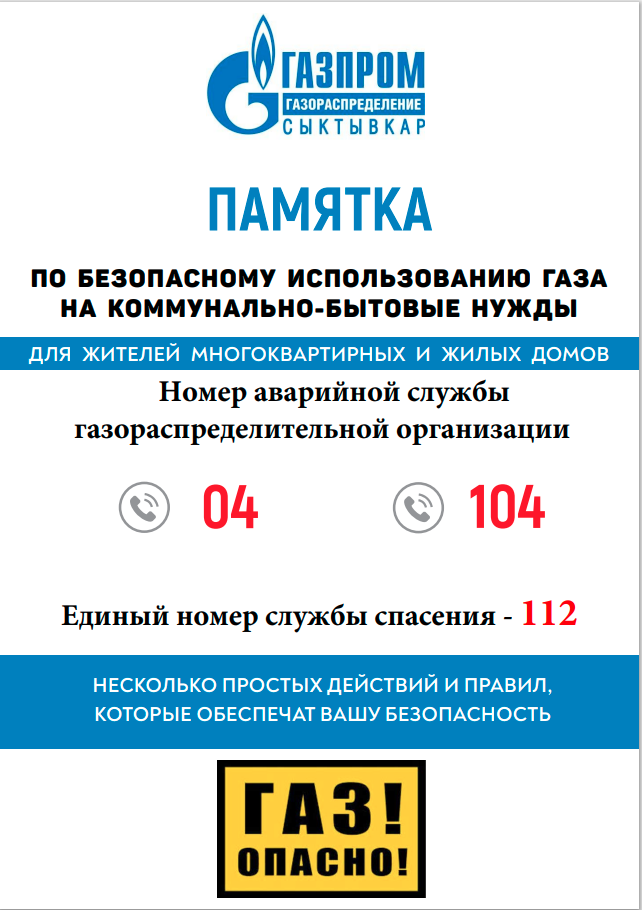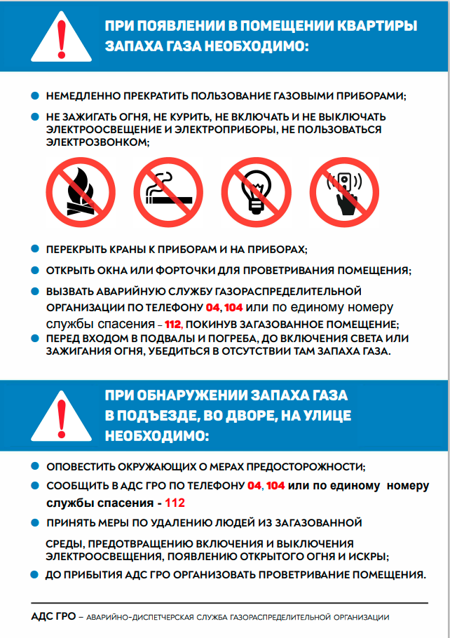Памятка по безопасному использованию газа на коммунально-бытовые нужды для жителей МКД