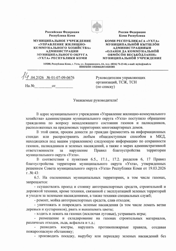 Правила благоустройства на территории МО "Ухта"
